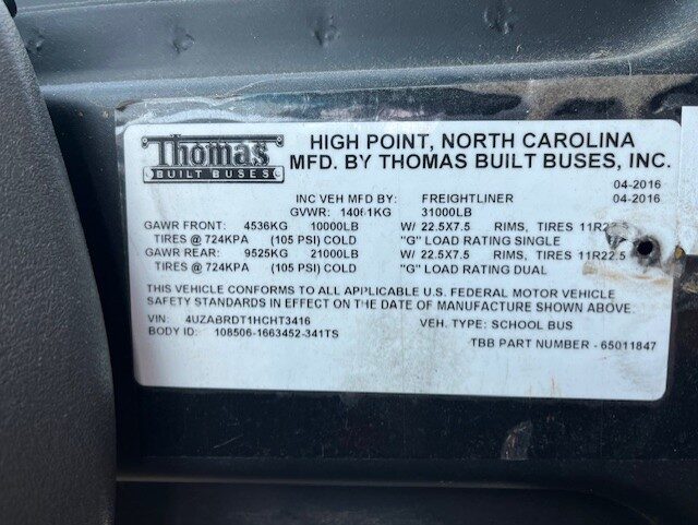 2017 Thomas Freightliner C2 77 Passenger Air Brake